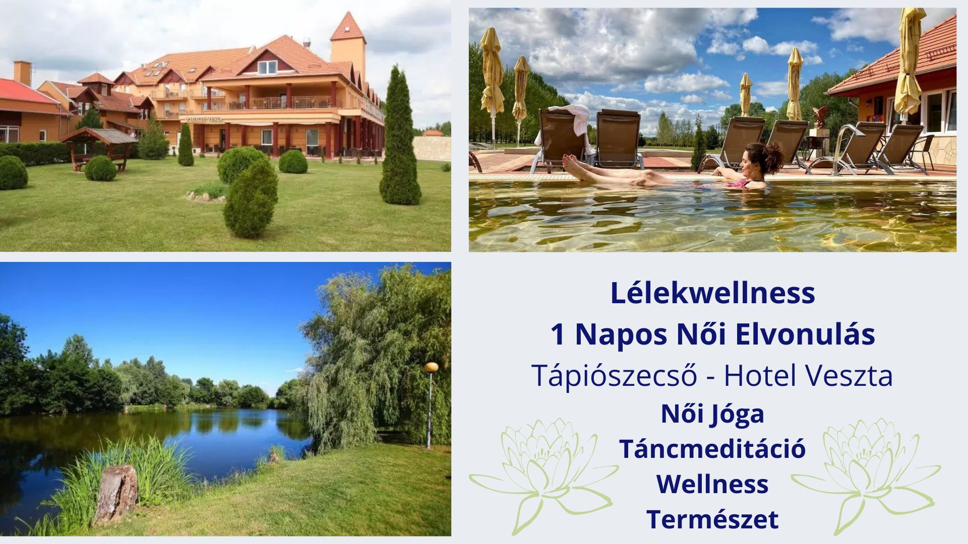 Varázslatos környezetben, egy testet-lelket kényeztető alkalom NŐI JÓGA gyakorlással, TÁNCMEDITÁCIÓVAL. A helyszín csodálatos wellness részlege (kinti, benti termál medence, kinti úszómedence, kinti-benti szauna, kinti dézsafürdő, sókamra) teljes felüdülést nyújtó óriás parkja kis tavacskával koronázza meg ottlétünket. A napot egy fenséges vacsorával zárjuk!